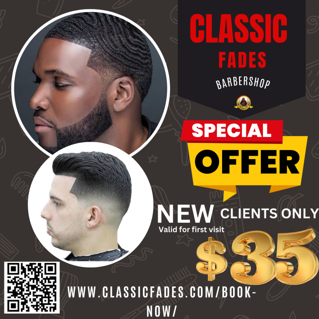 Introducing our new client discount special! Enjoy $35 flat rate for your first haircut or grooming service at our barbershop. Experience top-notch styling and personalized attention from an expert barber while saving on your initial visit. Don’t miss out—book your appointment today and step into style! Thanks a lot and we appreciate your business.